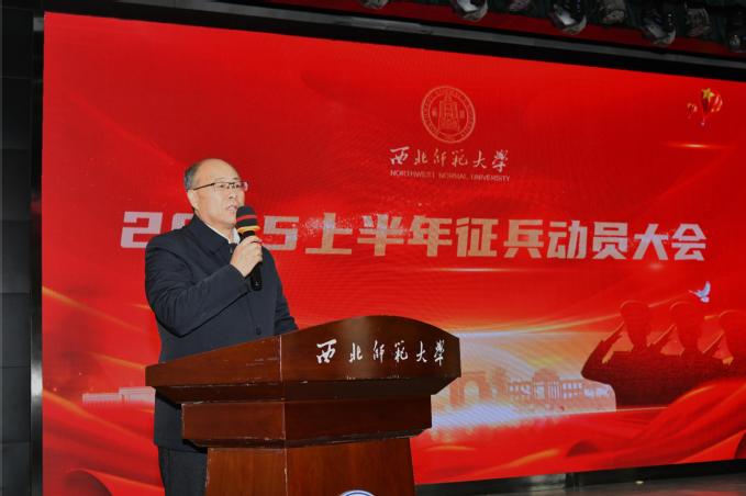 12月19日,西北师大召开2025上半年征兵动员大会。安宁区人民武装部上校部长李清良,西北师大副校长王文昇出席会议,学校相关职能部门负责人和各学院副书记、辅导员、入伍积极分子和毕业生代表参加。