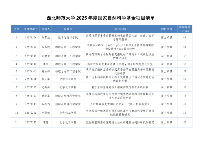 西北师大获批65项国家自然科学基金项目